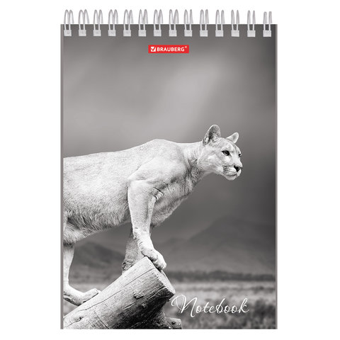 Блокнот А5, 146х205 мм, 60 л., гребень, картон, жесткая подложка, клетка, BRAUBERG, "Животные", 129810