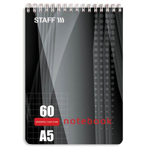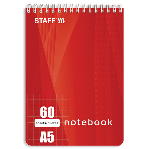 Блокнот А5 146х205 мм, 60 л., гребень, жесткая подложка, клетка, STAFF, 4 вида, 126539