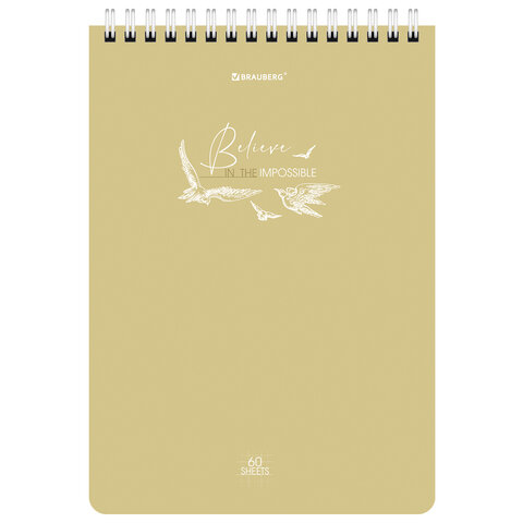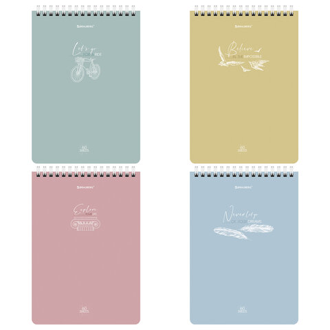 Блокнот А5 (146х206 мм), 60 л., гребень, картон, клетка, BRAUBERG, "Pastel", 114362
