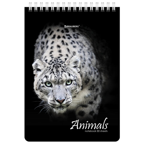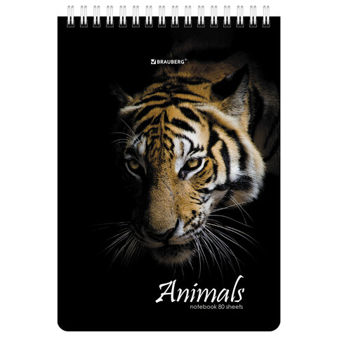 Блокнот А5 (146х206 мм), 80 л., гребень, картон, жесткая подложка, клетка, BRAUBERG, "Хищники", 114385