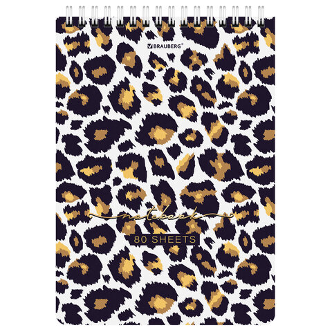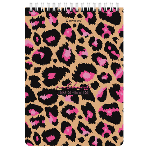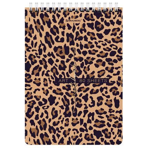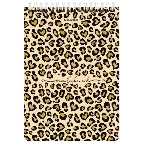 Блокнот А5 (146х206 мм), 80 л., гребень, картон, жесткая подложка, клетка, BRAUBERG, "Leopard", 114383