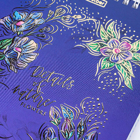 Блокнот А5 146х215 мм, 80 л., гребень, клетка, ламинация, 3D фольга, HATBER, "Тон природы", 80Б5лофВ1гр