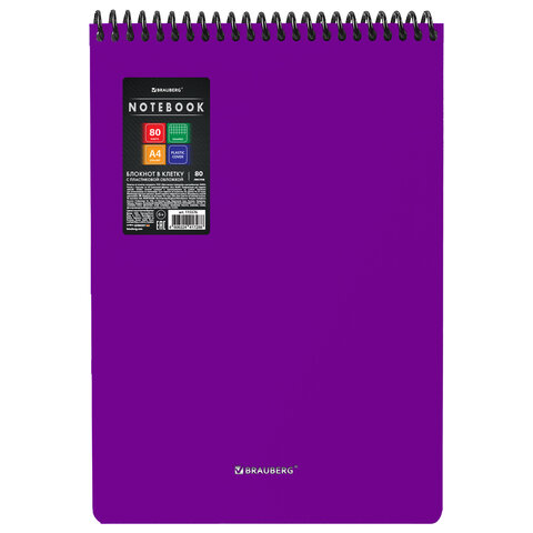 Блокнот БОЛЬШОГО ФОРМАТА А4, 80 л., обложка пластик, клетка, BRAUBERG "Metropolis", ФИОЛЕТОВЫЙ, 115576