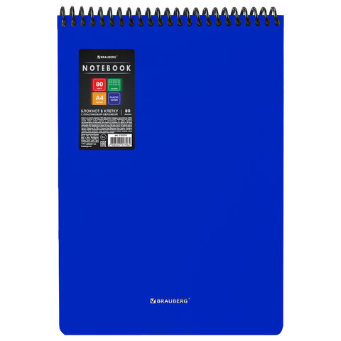 Блокнот БОЛЬШОГО ФОРМАТА А4, 80 л., обложка пластик, клетка, BRAUBERG "Metropolis", СИНИЙ, 115574