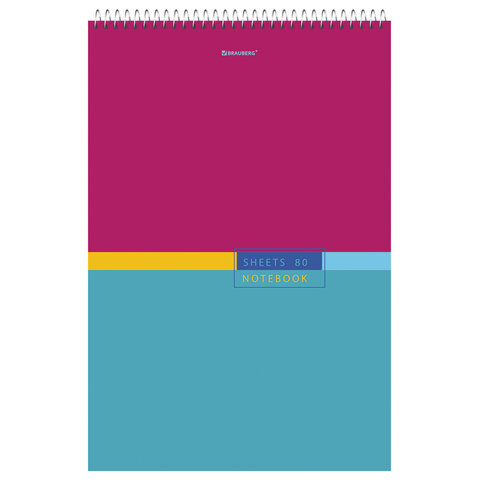 Блокнот БОЛЬШОЙ ФОРМАТ А4 198х297 мм, 80 л., гребень, жесткая подложка, клетка, BRAUBERG, "Color", 114356