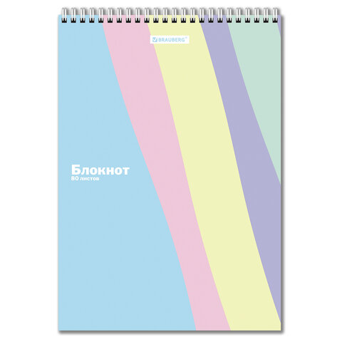 Блокнот БОЛЬШОЙ ФОРМАТ А4, 200х290 мм, 80 л., гребень, подложка, клетка, кросс-серия "PASTEL", BRAUBERG, 117032