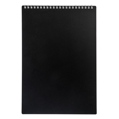 Стильный и универсальный блокнот подойдёт для важных записей и заметок. Пластиковая обложка защищает от загрязнений и продлевает срок службы. Берите его с собой, фиксируйте идеи, делайте зарисовки.