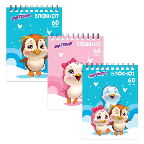 Блокнот МАЛЫЙ ФОРМАТ А6 108х146 мм, 60 л., гребень, картон, клетка, ЮНЛАНДИЯ, "Пингвинята", 129832