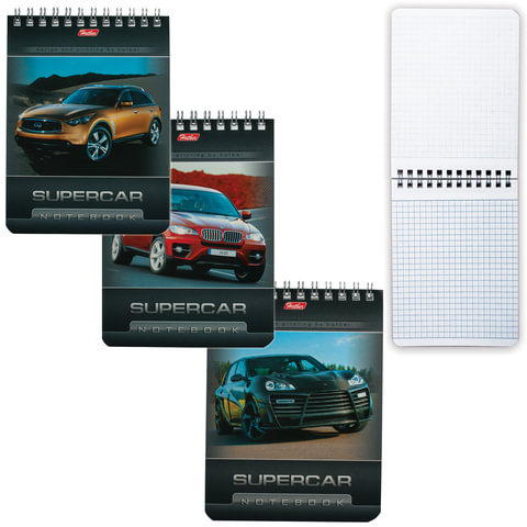 Блокнот МАЛЫЙ ФОРМАТ А6 110х145 мм, 40 л., гребень, лакированная обложка, клетка, HATBER, "Машины", 004666, 40Б6B1гр