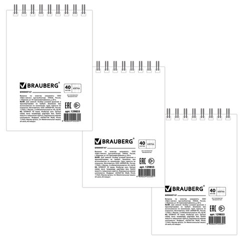 Блокнот МАЛЫЙ ФОРМАТ А7 75х105 мм, 40 л., гребень, картон, клетка, BRAUBERG, "Черный стиль", 129855