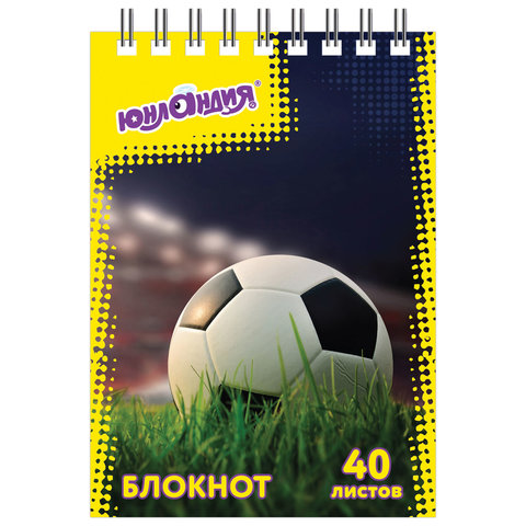 Блокнот МАЛЫЙ ФОРМАТ А7 75х105 мм, 40 л., гребень, картон, клетка, ЮНЛАНДИЯ, "Монстр-трак" / "Футбол", 129859