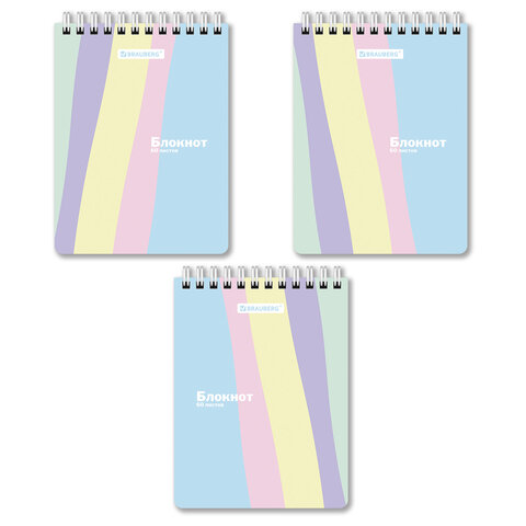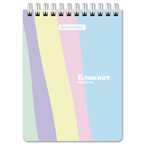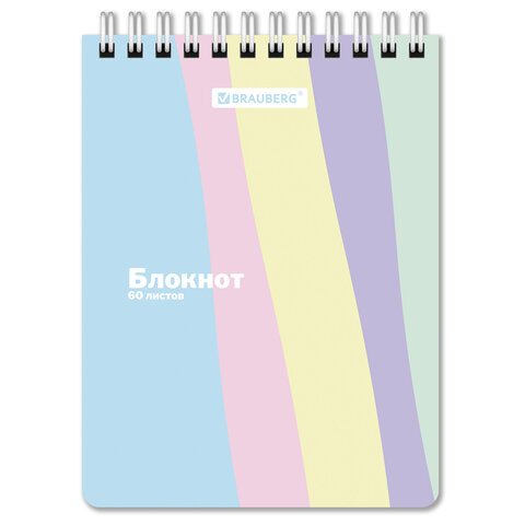 Блокнот МАЛЫЙ ФОРМАТ А6 108х145 мм, 60 л., гребень, картон, клетка, кросс-серия "PASTEL", BRAUBERG, 117033