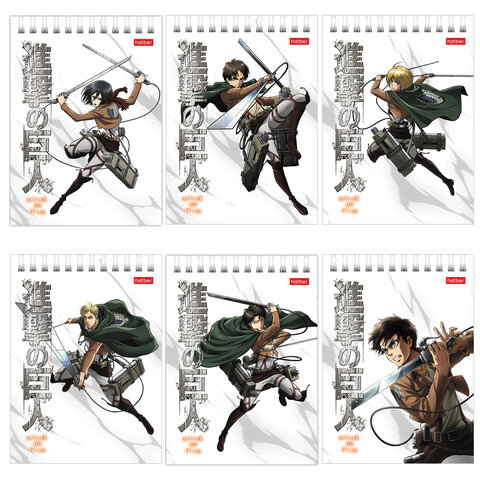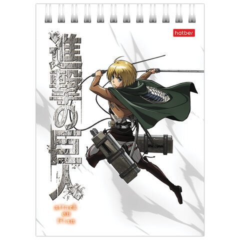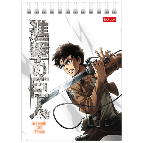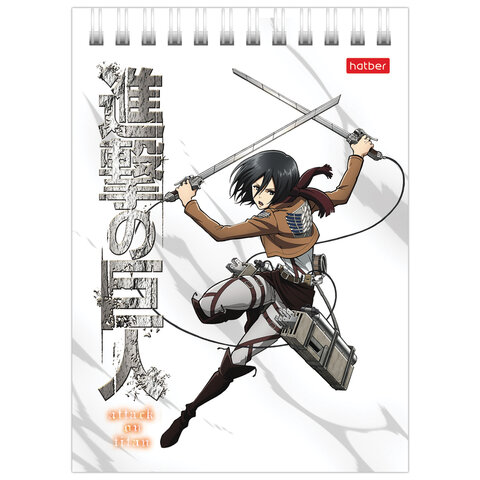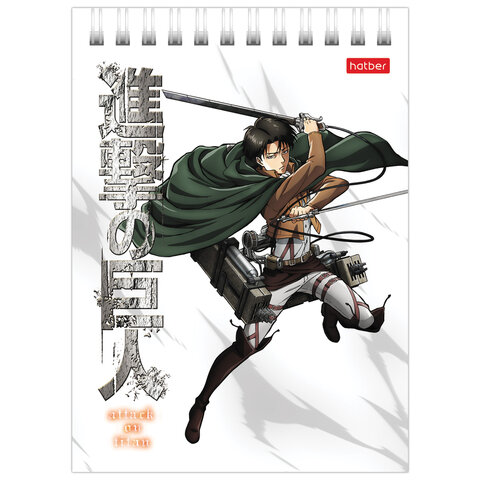 Блокнот МАЛЫЙ ФОРМАТ А6 110х145 мм, 40 л., гребень, лакированный, клетка, HATBER "Атака Титанов", 083956, 40Б6В1гр