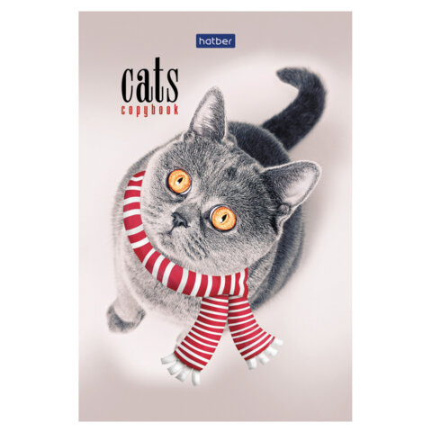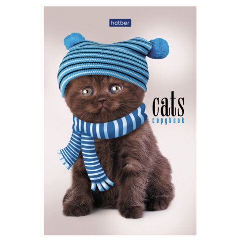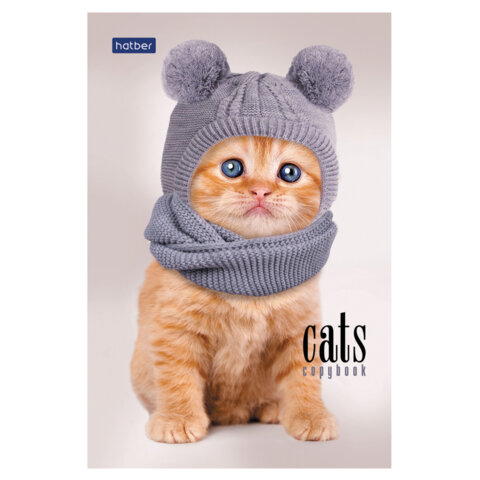 Блокнот МАЛЫЙ ФОРМАТ А6, 40 л., склейка, мелованная бумага, клетка, глянцевая ламинация, HATBER, "Кототерапия", 057230, 40Б6лA1к