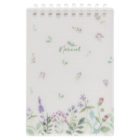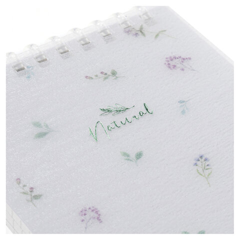 Блокнот МАЛЫЙ ФОРМАТ А6 80 л., мягкий гребень, пластик, фольга, клетка, HATBER, NATURAL FLOWERS, 090108, 80Б6A1мс_33479