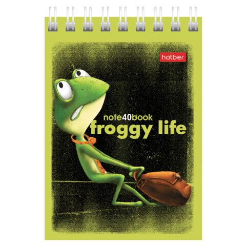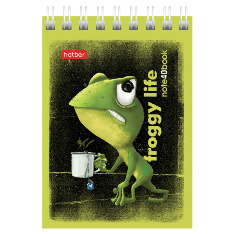 Блокнот МАЛЫЙ ФОРМАТ А7, 40 л., гребень, картон, клетка, HATBER, "Лягух Кир", 081184, 40Б7В1гр