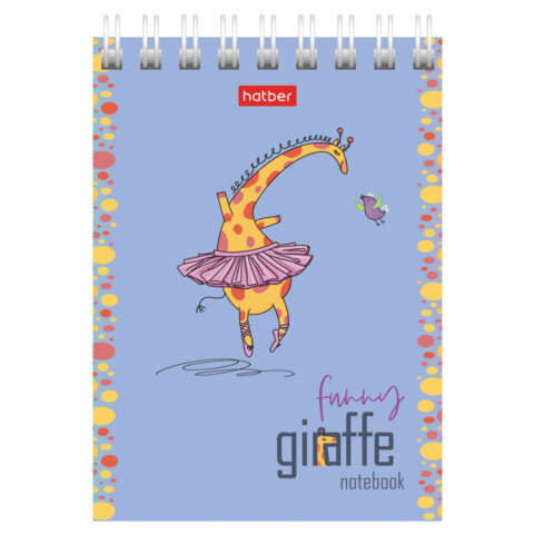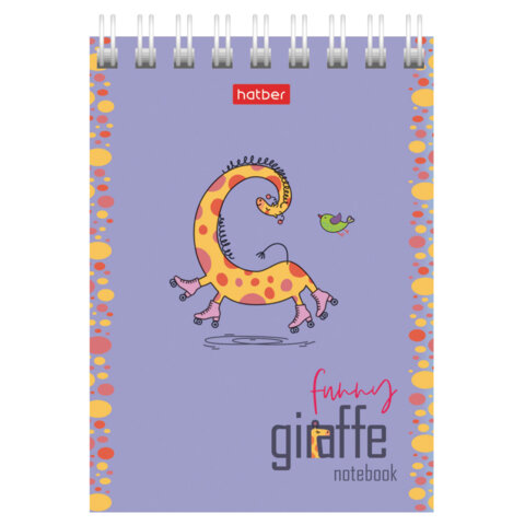 Блокнот МАЛЫЙ ФОРМАТ А7, 60 л., гребень, картон, клетка, HATBER, "Веселый жираф", 081165, 60Б7В1гр
