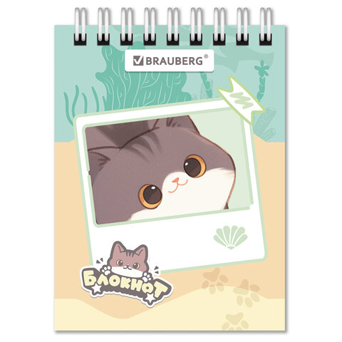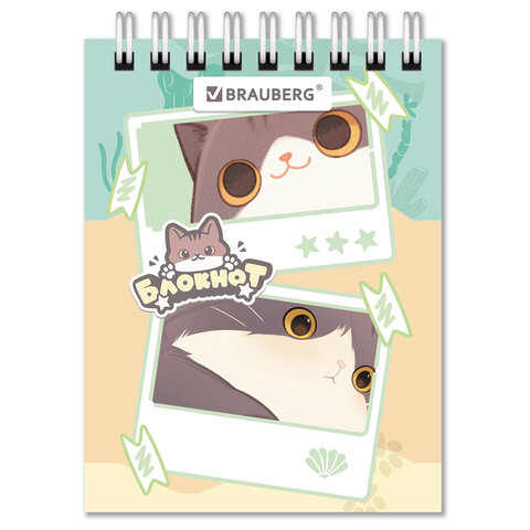 Блокнот МАЛЫЙ ФОРМАТ А7, 75х105 мм, 40 л., гребень, клетка, кросс-серия "МИЛЫЕ КОТЫ", BRAUBERG, 116988