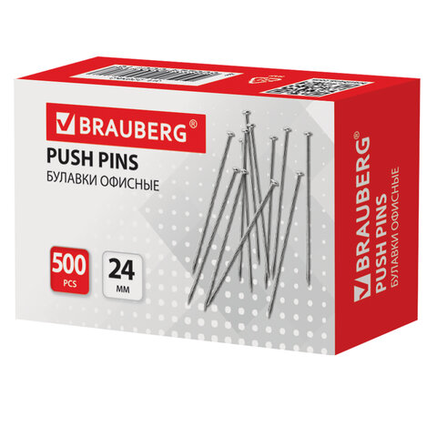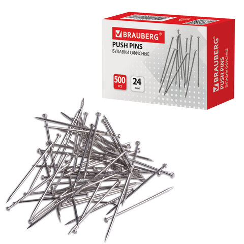 Булавки универсальные BRAUBERG, 24 мм, 500 штук, в картонной коробке, 220562