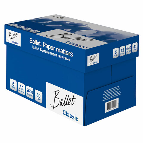 Бумага офисная БОЛЬШОГО ФОРМАТА (297х420), А3, 80 г/м2, 500 л., марка В, BALLET CLASSIC, 153% (CIE)