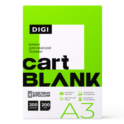 Бумага для цветной лазерной печати БОЛЬШОЙ ФОРМАТ (297х420), А3, 200 г/м2, 200 л., CARTBLANK DIGI, 145%