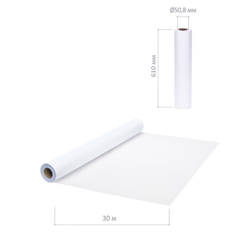 Бумага широкоформатная рулон для плоттера, 610 мм х 30 м х втулка 50,8 мм, 120 г/м2, белизна CIE 146%, BRAUBERG, 110621