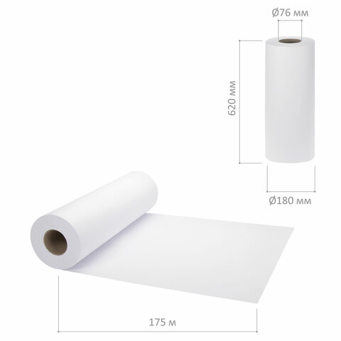 Бумага широкоформатная рулон для плоттера, 620 мм х 175 м х втулка 76 мм, 80 г/м2, белизна CIE 146%, BRAUBERG, 110456