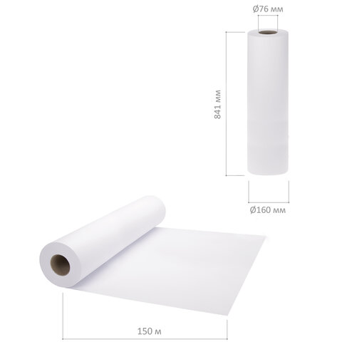 Бумага широкоформатная рулон для плоттера, 841 мм х 150 м х втулка 76 мм, 80 г/м2, белизна CIE 146%, BRAUBERG, 110635