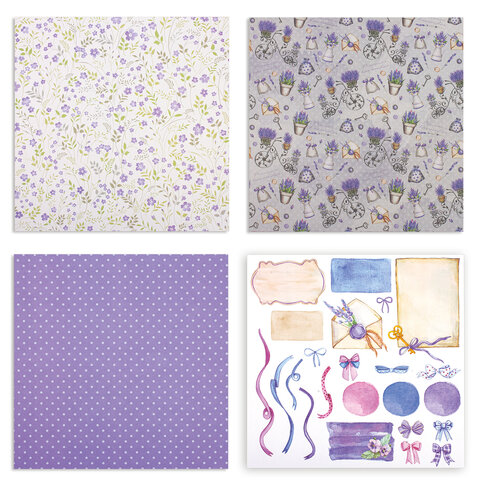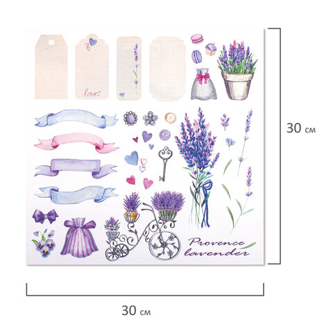 Бумага для скрапбукинга 30х30 см "Прованс", двусторонняя, 12 листов, 12 дизайнов, 180 г/м2, ОСТРОВ СОКРОВИЩ, 662765