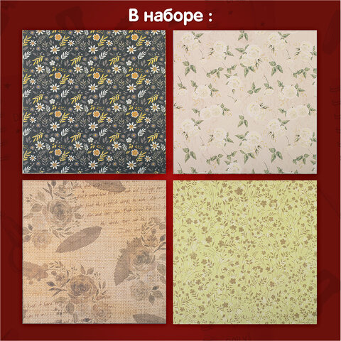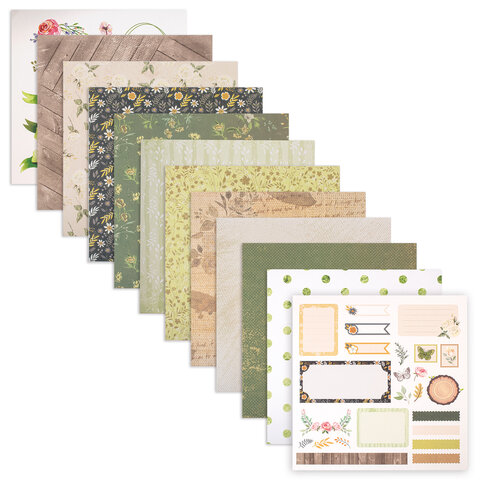 Бумага для скрапбукинга 30х30 см "Рустик", двусторонняя, 12 листов, 12 дизайнов, 180 г/м2, ОСТРОВ СОКРОВИЩ, 662770