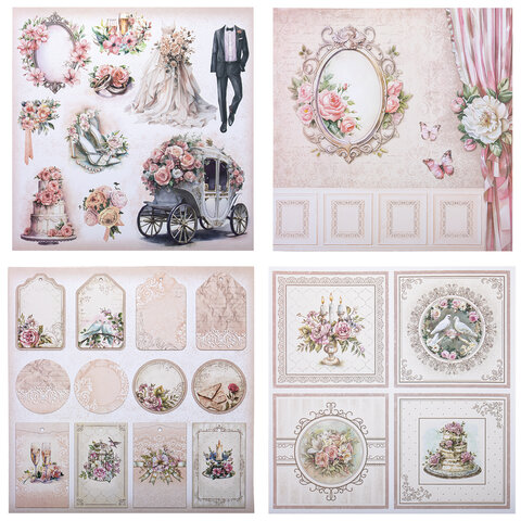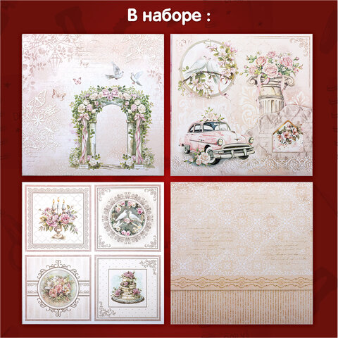 Бумага для скрапбукинга 30х30 см "Свадебный", двусторонняя, 12 листов, 180 г/м2, ОСТРОВ СОКРОВИЩ, 665435