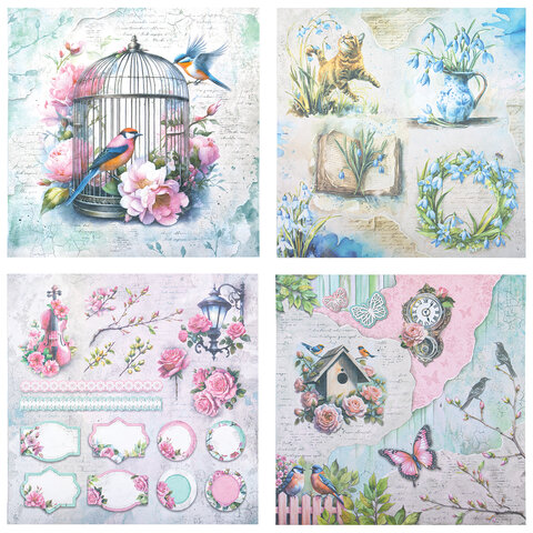 Бумага для скрапбукинга 30х30 см "Весна", двусторонняя, 12 листов, 180 г/м2, ОСТРОВ СОКРОВИЩ, 665439