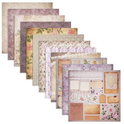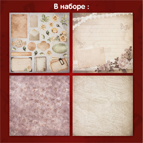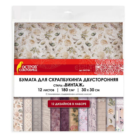Бумага для скрапбукинга 30х30 см "Винтаж", двусторонняя, 12 листов, 12 дизайнов, 180 г/м2, ОСТРОВ СОКРОВИЩ, 662766