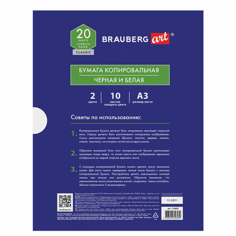 Бумага копировальная (копирка) А3, 2 цвета по 10 листов (черная, белая), BRAUBERG ART, 113855
