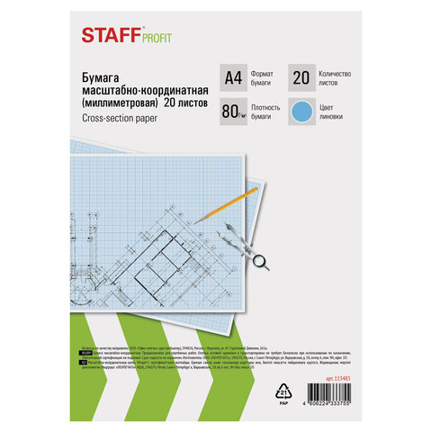 Масштабно-координатная бумага STAFF предназначена для выполнения чертежно-графических работ карандашом или тушью. Применяется при создании инженерных схем и чертежей, планов и карт, а также при рисовании выкройки.