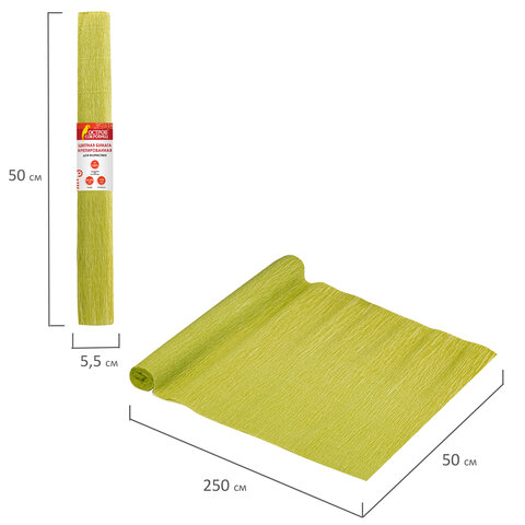Бумага гофрированная/креповая, 110 г/м2, 50х250 см, желто-зеленая, в рулоне, ОСТРОВ СОКРОВИЩ, 112538