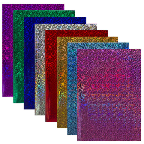 Цветная бумага, А4, ГОЛОГРАФИЧЕСКАЯ САМОКЛЕЯЩАЯСЯ, 8 листов 8 цветов, ОСТРОВ СОКРОВИЩ, "ЗВЕЗДЫ", 129286
