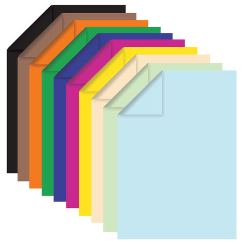 Цветная бумага А4 ТОНИРОВАННАЯ В МАССЕ, 100 листов 10 цветов, склейка, 80 г/м2, BRAUBERG, 210х297 мм, 124715