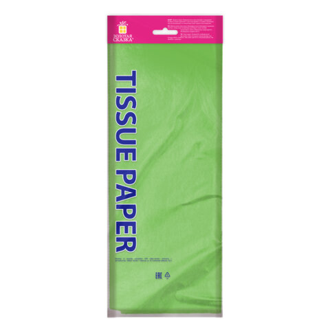 Цветная бумага ТИШЬЮ 17 г/м2, 50х66 см, 10 листов, салатовый цвет, ЗОЛОТАЯ СКАЗКА, 116482