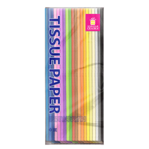 Цветная бумага ТИШЬЮ 17 г/м2, 50х66 см, 100 листов, 20 цветов, пастель ассорти, ЗОЛОТАЯ СКАЗКА, 116495