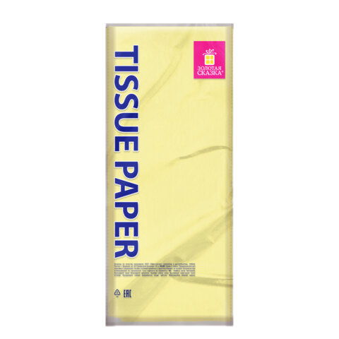 Цветная бумага ТИШЬЮ 17 г/м2, 50х66 см, 50 листов, лимонный цвет, ЗОЛОТАЯ СКАЗКА, 116487