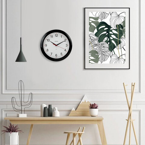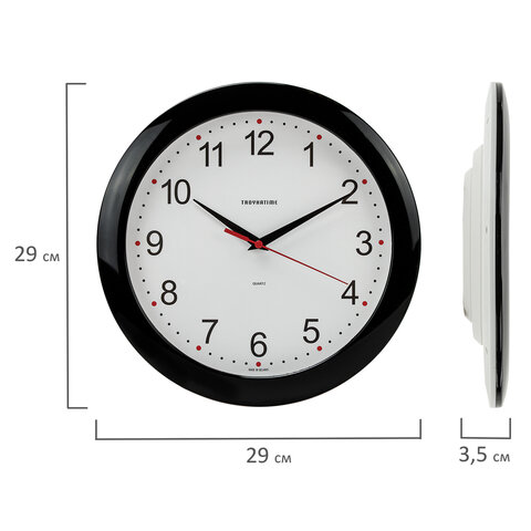 Часы настенные TROYKATIME (TROYKA) 11100112, круг, белые, черная рамка, 29х29х3,5 см