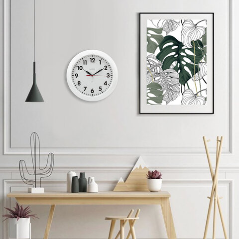 Часы настенные TROYKATIME (TROYKA) 11110118, круг, белые, белая рамка, 29х29х3,5 см