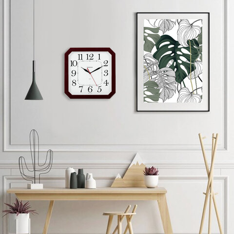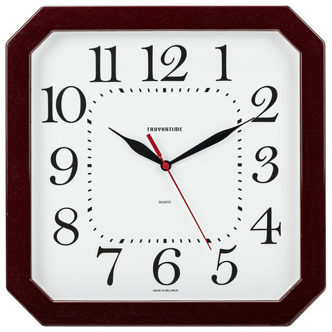 Часы настенные TROYKATIME (TROYKA) 31331316, восьмигранник, белые, коричневая рамка, 29х29х3,5 см
