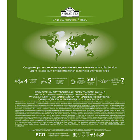 Чай AHMAD (Ахмад) "Green Tea" зеленый, 100 пакетиков по 2 г, 478i-08