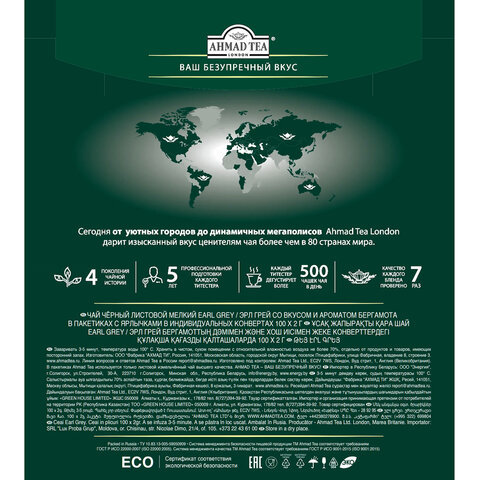 Чай AHMAD "Earl Grey" черный с ароматом бергамота,100 пакетиков в конвертах по 2 г, 595i-08