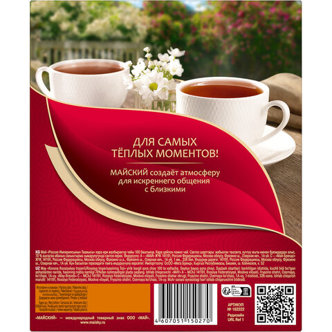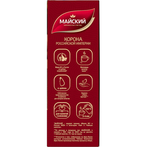 Чай МАЙСКИЙ "Корона Российской Империи" черный цейлонский, 100 пакетиков по 2 г, 113159