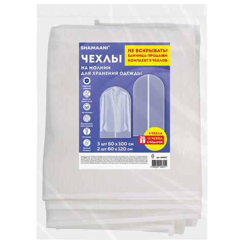 Чехлы для хранения одежды на молнии, КОМПЛЕКТ 4 шт. + 1 в подарок, SHAMAANI (ШАМААНИ), 609597