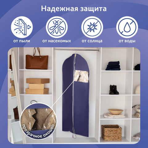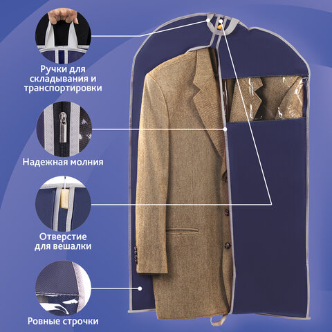 Чехол для одежды на молнии с ручками дорожный 60х100 см, синий, SHAMAANI (ШАМААНИ), 609602