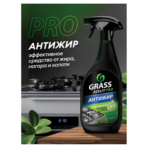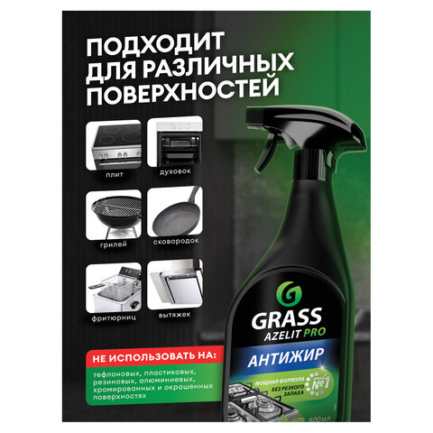 Средство для чистки плит, духовок, грилей от жира/нагара, УСИЛЕННЫЙ РАСПЫЛИТЕЛЬ, 600 мл, GRASS AZELIT PRO, щелочное, 126091